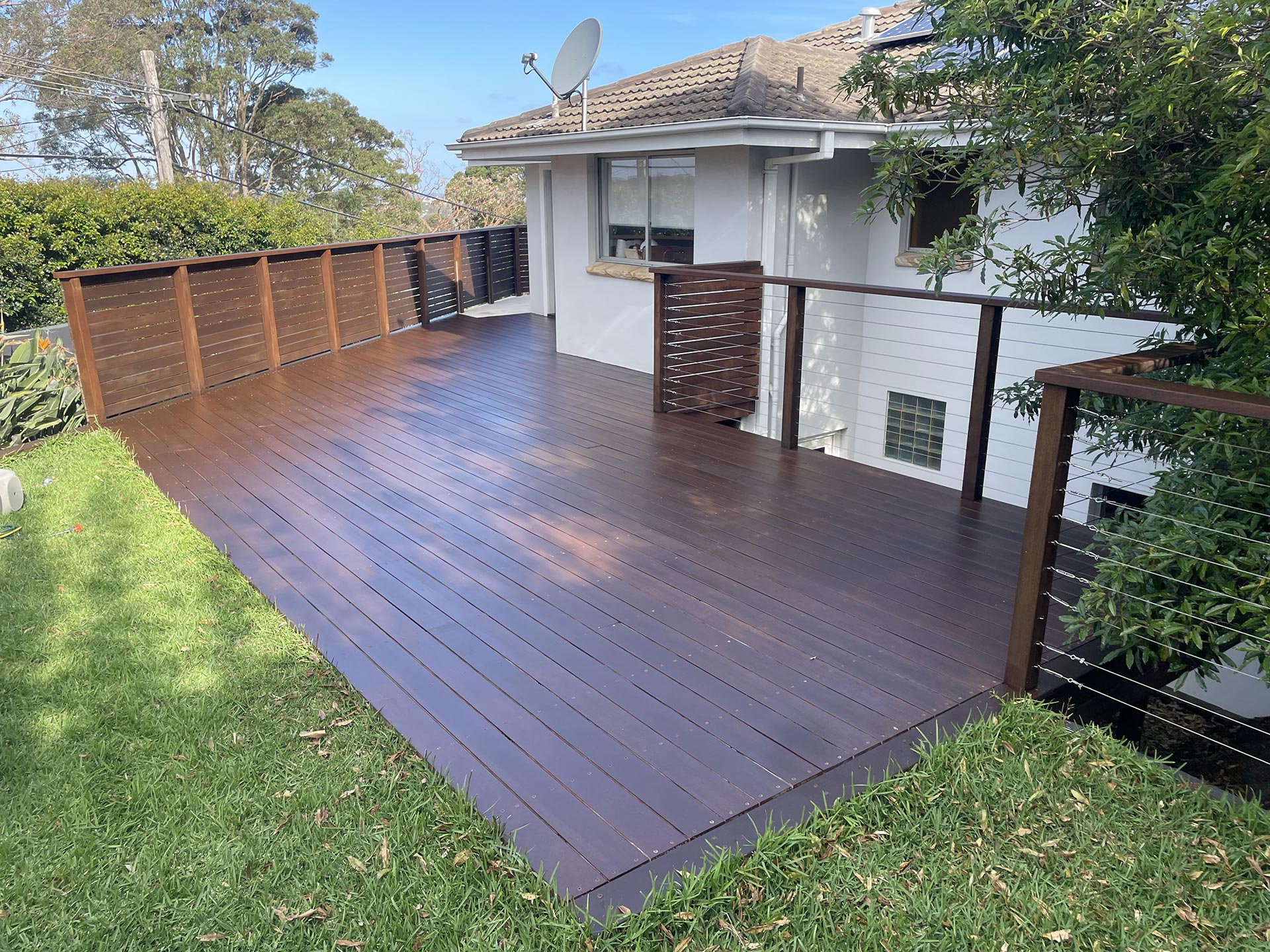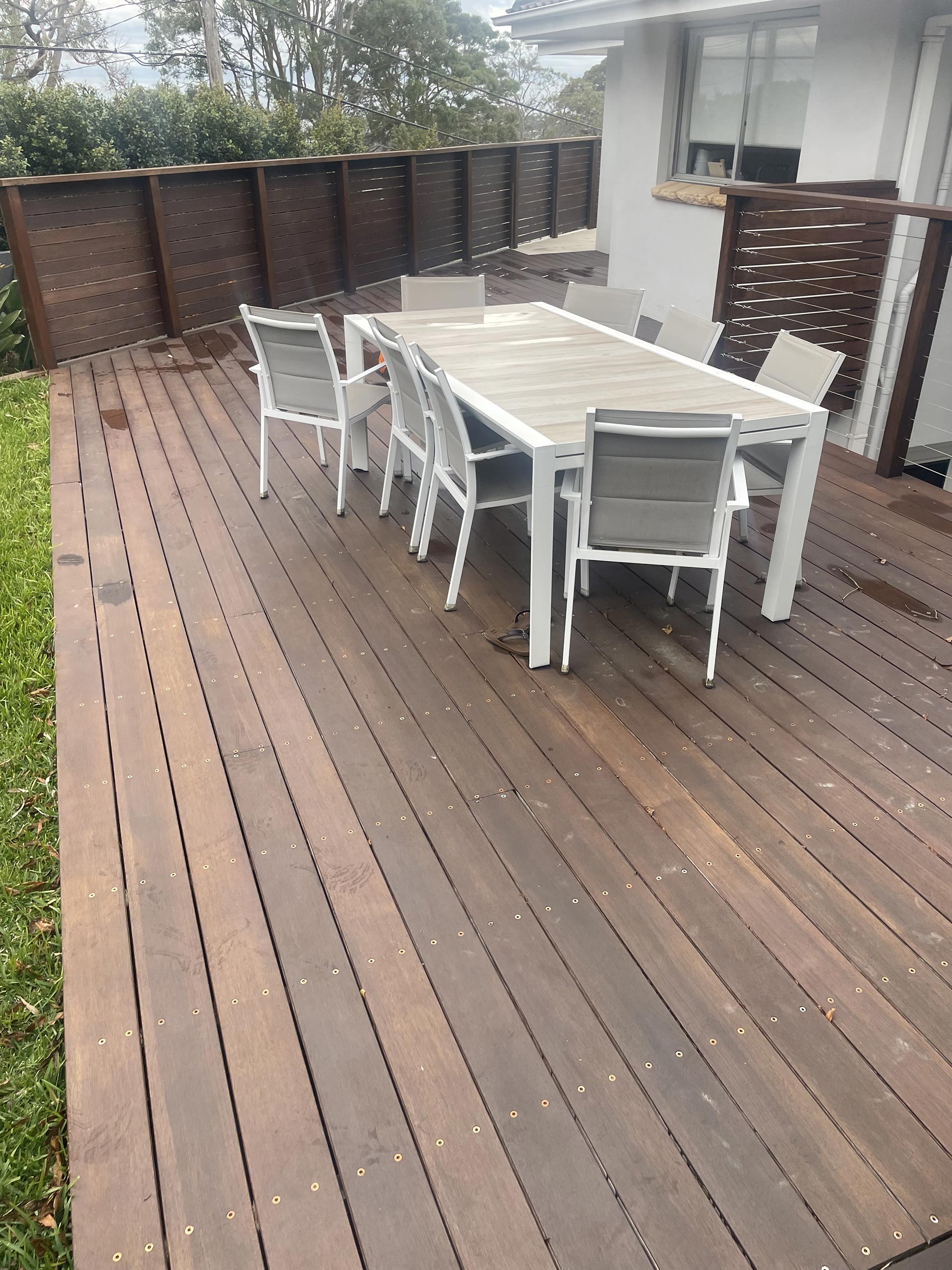 We start by carefully pressure washing the deck to remove dirt, grime, and old sealant. For stubborn stains or weathered timber, we sand the surface to bring back its smooth texture and original colour. Once prepped, we apply a high-quality oil or stain to enhance the wood’s natural beauty and protect it against sun damage, moisture, and foot traffic.